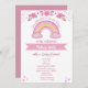 Une invitation au baby shower arc-en-ciel est un moyen de célébrer l'arrivée imminente d'un nouveau bébé avec des amis et la famille. Ce design présente une fleur colorée avec un arc-en-ciel coloré. Ajoutez les détails de votre fête à cette adorable invitation de baby showers filles.