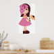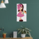 Une fille en rose debout et tenant une fleur. Ce design semble vraiment efficace sur ces Poster