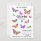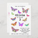 Une collection de papillons colorés et psychédéliques en rose vif, violet, bleu, orange, jaune et aqua. Un beau papillon multicolore, une invitation à fêter son anniversaire. Cette invitation amusante à la fête est facile à personnaliser pour créer une invitation unique pour les filles et les amateurs de papillons adultes. Illustrations colorées de papillons psychédéliques par l'artiste Catherine Sweetman