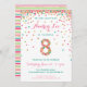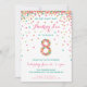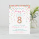 Célébrez l'anniversaire de votre enfant de 8 ans avec de l'or coloré, du rose, de la menthe et des confettis turquoises sur ces invitations de 8e anniversaire ! Avec les détails de la fête de votre fille et un "8" en confetti. Le titre dit : Nous ne pouvons pas attendre ... !" Bandes assorties jolies et colorées sur le dos. Ce design adorable est super mignon et girly.