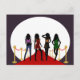 © Sunny Mars Designs. Purple White Spotlight Fashion Girls on the Red Carpet Postcard - Cool, mignonne, moderne, tendance, fille sur mesure nuit cartes postales avec la silhouette de quatre magnifiques jeunes filles glamour divas de mode ou modèles de modélisation et posant dans leurs tenues élégantes.