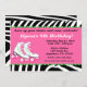 Invitation vos invités d'une façon amusante et mignonne à votre fête d'anniversaire de patinage avec cette invitation à imprimer en zèbre et rose amusante.