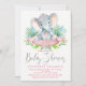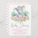 Des invitations pour des douches pour bébés avec un adorable petit éléphant portant un joli arc rose sur un arrière - plan en feuille de palme. Ces invitations pour les douches pour bébés éléphants sont facilement customisées pour votre événement en ajoutant simplement les détails de votre événement.