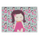 Design mignon, ludique, fantaisiste, coloré sur des objets tels que des portefeuilles, des montres, des cartes, des autocollants, des sacs à tiroirs, des miroirs compacts, des porte - clés, des carnets, des postes, des classeurs, des coussins, etc., propose des petites filles avec des robes de coeur roses, des sacs à main pois rose et blanc, des étoiles violettes et un arrière - plan rayé bleu chevron.