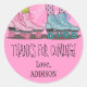 Des filles en patins à thème amusants et mignonnes de motifs et de pois colorés se promènent dans ce brillant et heureux patinage à rouleaux thème fête d'anniversaire préfèrent autocollant. S'accorde parfaitement avec notre invitation correspondante :