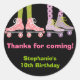 Des filles en patins à thème amusants et mignonnes de motifs et de pois colorés se promènent dans ce brillant et heureux patinage à rouleaux thème fête d'anniversaire préfèrent autocollant.