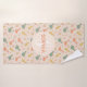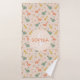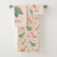 Cette serviette de bain mignonne rose pour enfants dispose d'un motif de dessin animé dinosaure, avec un t-rex, stegosaurus, arcs-en-ciel et plantes et fleurs de jungle jurassique, et peut être personnalisée avec votre nom de filles et monogramme. Le cadeau idéal pour votre bébé, bébé ou enfant amateur de dinosaures, sur le thème du dinosaure !