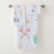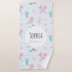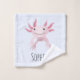 Ce modèle de serviette de bain pour enfants mignonne et moderne dispose d'un motif axolotl rose unique et peut être personnalisé avec votre nom de fille. Le motif excentrique et neutre pour les sexes comprend également des fleurs, des plantes de rivière et des vagues. Le cadeau idéal pour votre enfant sur le thème de la salamandre !