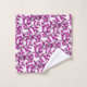 Cette serviette unique à thème volleyball dispose d'un motif aléatoire de différentes tailles fuchsia et de volleyballs stylisés blancs tournés partout sur un arrière - plan blanc personnalisable - personnalisez la serviette de bain & serviette de bain avec son nom - par katz_d_zynes