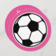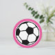 Invitations à la fête d'anniversaire de soccer pour filles rondes. Invitations de soirées à thème de football pour enfants Anniversaire, BBQ, tournoi etc. Texte personnalisable et couleur arrière - plan par exemple rose néon girly. Belle conception de ballon de football avec le nom et l'âge de l'enfant. La typographie Whimsical. Personnalisez-vous pour les joueurs sportifs. Cercle amusant découpé en forme. Des jouets pour enfants et des activités sont conçus pour les célébrations. Faites des invitations circulaires pour le 4ème 5ème 7ème 8 ème 9ème 10ème 11ème 12ème 13ème Anniversaire etc. Accessoires sur mesure pour entraîneur de sport / soccer maman et papa.