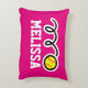 Coussin personnalisé avec jouet jaune mignon à balle molle design. Décor de la maison à thème sportif avec nom ou monogramme de l'enfant. Impression mignonne avec des couleurs girly pour bébé pépinière, chambre pour enfants ou salle de jeux avec canapé / canapé. Convient aux garçons et aux filles. Couleur arrière - plan personnalisable, bleu ou rose néon. Sporty 1er anniversaire idée cadeau pour fils, petit-fils, petit-enfant, petite-fille, fille, neveu, etc. Aussi cool pour entraîneur, joueur et ventilateur. Créez votre propre maison pour les coéquipiers ou les décorations de club. Illustration loufoque.