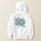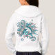 Le sweat - shirt à capuche de volley-ball de cette fille cool présente une "explosion" de volley-ball turquoise, gris et blanc de tailles variées et de formes d'étoiles turquoises, grises et blanches - les panneaux de volley turquoise et gris sont mélangés avec un motif kaléidoscopique girly, floral - personnaliser avec le nom de l'athlète et le numéro de maillot - le design est à l'arrière du sweat - shirt à capuche mais peut être déplacé ou dupliqué sur le devant - par katz_d_zynes