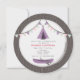 Une invitation à la fête d'anniversaire pour filles avec un thème campant rustique. L'Invitation a une illustration d'un tipi violet avec un motif chevron en haut et un canot violet en bas. L'Invitation est également doté d'un toit en chaume et d'un arrière - plan d'inspiration bois. Personnalisez le texte avec les détails de votre occasion.