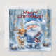 Snowfall & Scarlet Threads Cartes de Noël personnalisées Dans une forêt enneigée remplie de pinecones et de flocons en chute, un joyeux gnome en tenue d'hiver bleue partage un moment tendre avec un petit renne. Le gnome tient un foulard à motifs rouges et blancs, faisant écho à l'esprit festif qui danse à travers la scène. Leur regard affectueux et la douce chute de neige créent un sentiment de paix, de connexion et de magie de vacances. 📜 Reverse Side Text : "Gnome pour les fêtes, renne à mes côtés !" Nous vous souhaitons un très joyeux Noël (Votre Nom)