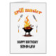 Une carte d'anniversaire pour un gendre qui adore griller. Un design fumé et alléchant avec un barbecue grill avant et centre, flammes se levant dans l'arrière - plan. "Grill master" met l’accent, comme lui quand il est derrière le grill !
