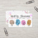 Drôle, mignon boules de gribouillis de style rétro du milieu du siècle avec des visages sur ces cartes de visite pour les tricots et les métiers en bonneterie, crochet et filé à la main ou espun maison.