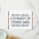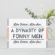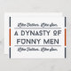Cette drôle de carte de fête des pères en rouge et bleu avec la citation "Comme père, comme fils. Une dynastie d'hommes drôles" est parfait pour votre fils en fête des pères. Cette carte de typographie moderne est design pour rappeler à votre fils d'où vient son sens de l'humour, en ce beau jour qui honore tous les pères du monde entier. Bonne fête des pères !