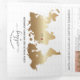 Carte du monde moderne et élégant Invitation Mariage Destination, comme passeport avec fausse crête d'or avec monogramme, Italie. Ajoutez votre code QR. Cimier dessiné par Savanamm. Vous voulez un design de crête sur mesure? Contactez-moi à l'adresse savanammetsy@gmail.com