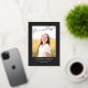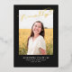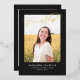 Cette élégante faire-part de graduation et d'invitation comporte une seule photo avec le mot finalement en feuille d'or au-dessus sur un arrière - plan noir. Le dos de la carte peut être utilisé pour une invitation ou un message personnel.