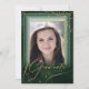 Un arrière - plan d'aquarelle dans les tons vert émeraude est surmonté d'une abstraite de lignes dorées fines et d'effets lumineux scintillants pour créer cette belle invitation à la graduation. La carte comporte également une calligraphie élégante et un cadre en dégradé pour tenir votre photo. Ajoutez facilement vos propres détails personnels à l'aide du modèle fourni. Recherchez ID867 pour voir d'autres pièces et choix de couleurs pour cet ensemble.