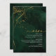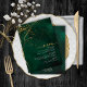 Un arrière - plan d'aquarelle dans les tons vert émeraude est surmonté d'une abstraite de lignes dorées fines et d'effets lumineux scintillants pour créer les pièces de cette belle suite mariage. La carte "Menu" mariage présente également une calligraphie élégante et une disposition hors du centre pour séduire visuellement. Ajoutez facilement vos propres initiales, la date du mariage et les sélections de menu en utilisant le modèle fourni. Recherchez ID867 pour voir d'autres pièces et choix de couleurs pour cet ensemble.