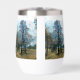 An autumn art design of a fir tree and a person enjoying some peace and quiet.