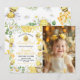 Showcase your little honey in the sweetest way with our First Bee Day Floral Honey Bee Birthday Photo Invitation! Featuring buzzing bees, cheerful florals, honeycomb accents, and soft botanical details, this invitation beautifully highlights your child’s photo while setting the tone for an adorable bee-themed first birthday celebration. Personalize with your baby’s name, age, photo, and party information to create a charming keepsake your guests will love. Perfect for a floral, garden, or honey bee day party!