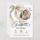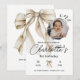 Celebrate this special milestone with a charming beige bow invitation for a girl's or boy's 1st birthday.
