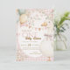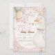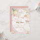 First birthday invitation featuring a playful goose design in a pink checkered pattern