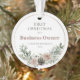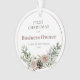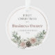 First Christmas as a Business Owner Personalized with Name and Year Round Acrylic Keepsake Ornament Gift... A delicate bouquet of pink roses, pine cones, and Christmas botanicals decorates the rose gold metallic circle framing the text of your holiday themed ornament gift for new business owners. The example wording on this keepsake ornament reads "First Christmas as a Business Owner" in elegant serif typography followed by the person's name and the current year. All text can be easily revised on the personalization template.