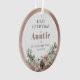 First Christmas as Auntie Personalized with Baby's Name, Birthdate, and Photo Round Acrylic Keepsake Ornament... A delicate bouquet of pink roses, pine cones, and holiday season botanicals decorates the rose gold metallic frame circling the text on front of your Christmas ornament gift for family members. On back of the ornament is the grandchild's photo also framed by metallic rose gold. The example wording on this keepsake ornament reads "First Christmas as Auntie of Bethany Westfield 05.15.2025". All example text and the placeholder photo can be easily revised with your own on the personalization template.