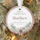 First Christmas as Mother Personalized with Baby's Name, Birthdate, and Photo Round Acrylic Keepsake Ornament... A delicate bouquet of pink roses, pine cones, and holiday season botanicals decorates the rose gold metallic frame circling the text on front of your Christmas ornament gift for mothers. On back of the ornament is the baby's photo also framed by metallic rose gold. The example wording on this keepsake ornament reads "First Christmas as Mother of Bethany Westfield 05.15.2025". All example text and the placeholder photo can be easily revised with your own on the personalization template.
