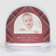 Celebrate and commemorate baby's first Christmas with this cute two-photo snow globe. Featuring an arched photo on each side with a classic red holiday plaid, this design is great for a first Christmas for a newborn but also works well for couples celebrating a first married Christmas or other occasions. The editable type on the back can be customized for any message. Find more colors and coordinating designs in the collection by Lea Delaveris Design.