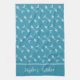 Une serviette de cuisine turquoise avec un imprimé en os de poisson. Personnalisez-le avec votre propre texte. © ArianeC Illustrations-Tous droits réservés