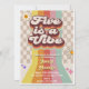 Célébrez votre invitation : Five is a Vibe 5th Birthday Description : Retro inspiré 5th anniversaire invitation avec un thème arc-en-ciel margueux super Caractéristiques : Arc-en-ciel de style hippie, marguerites, et polices et couleurs de sauce