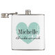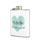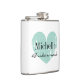 Flacon de hanche de coeur bleu turquoise personnalisée pour femme d'honneur. Élégante typographie de script avec symbole d'amour patiné. Mariage mignon, cadeau idéal pour les femmes pendant la soirée des filles ou la fête de bachelorette. Personnalisez-le avec un nom ou des initiales monographiques. Alcool / Boire présent. Faites-en un pour la mariée, la demoiselle d'honneur, etc.
