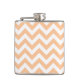 Hip et moderne Tendance Chevron Flask. Cette fiole cool présente un motif en zag zig de chevron en corail et blanc. Ajoutez du texte à cette conception pour lui donner une touche personnelle.