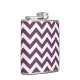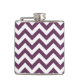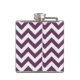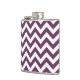 Hip et moderne Tendance Chevron Flask. Cette fiole cool est ornée d'un motif en zag zig en chevron violet et blanc. Ajoutez du texte à cette conception pour lui donner une touche personnelle.