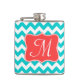 Flacon de corail de whiskey d'initiale de monogramme de motif d'impression de tissu de rayure de zigzag de Chevron d'Aqua moderne personnalisé
