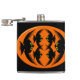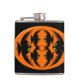 Cette fleur impressionnante présente un ovale orange avec six corneilles. Chaque corbeau a des yeux jaunes avec des élèves noirs et des ailes étirées. Les corbeaux volent vers l'autre formant une forme ovale. L'arrière - plan est noir.