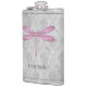 Profitez de vos boissons alcoolisées préférées à tout moment avec un flacon Magenta Dragonfly Damask Vinyl Wrapped. La conception de la fiole comporte une libellule colorée contre un motif vintage gris damassé élégant. Autres cadeaux disponibles avec ce design aussi.