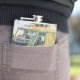 Le vinyle a couvert le flacon de hanche de conception de Land Rover de style ancien d'une peinture originale "FERME" par GJLC peinte dans la mémoire affectueuse peinture de ferme d'Éric John Dorling de chips 1909-1989 (Grazier/agriculteur) la "avec Sandy Sam border collie. Beau Noël ou cadeau d'anniversaire pour le papy.