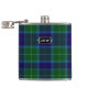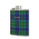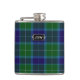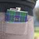 Flacon potable élégant avec le motif bleu, vert, et blanc traditionnel de plaid de tartan de Wallace de clan. Personnalisez le monogramme de trois lettres, sur le métal regardant la plaque, pour adapter à vos besoins. Grands idée de cadeau pour tout type et particulièrement grand comme cadeau de noce pour des garçons d'honneur.