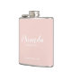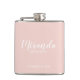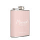 Ajoutez une touche personnelle à votre mariage avec une fiole de demoiselle d'honneur personnalisée. Ce flacon contient le nom personnalisé de la servante de pont dans un style de police de script moderne blanc avec titre et date mariage en blanc moderne sans serif style de police sur arrière - plan rose pâle. Parfait aussi pour femme de ménage d'honneur, mère de la mariée et plus.