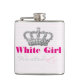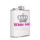 Blanc gris et flacon orienté rose. "La fille blanche gaspillée" est écrite sur l'avant dans de jolies polices. Le flacon est embelli avec une couronne et trois petits coeurs roses,