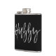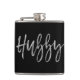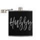 Hubby Black Flask avec Silver Foil Typographie. La fiole Hubby fait un cadeau parfait pour le marié en mariage ou en lune de miel et correspond à la fiole de femme pour la femme.