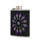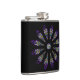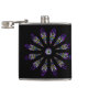 Un joli motif en vitrail orne cette fiole aux couleurs dominantes de violet, bleu, jaune et noir. Douze plumes abstraites encerclent un masque central pour former un modèle de mandala spirituel avec une sensibilité amérindienne.