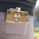Flacon de boisson à thème de cowgirl occidentale faite en graphismes d'un look cuir bronzé, avec une bande décorative marron, autour du sommet, avec un coeur, au milieu de l'avant. Personnalisez le monogramme d'une lettre brune pour vous-même ou comme une excellente idée cadeau.