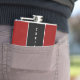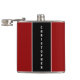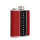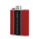Flacon rouge masculin élégant avec deux fines bandes blanches et une large bande noire verticale au centre avec nom personnalisé dessus.