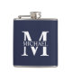 reprenant un monogramme blanc personnalisé dans un style de police serif classique avec le nom encadré au milieu du monogramme sur fond bleu marine.